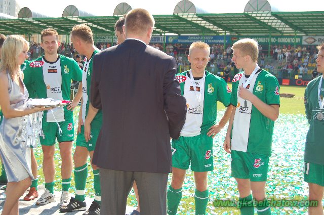 Potem na boisku działo się niewiele. Nie wiadomo, czy piłkarzy sparaliżowała stawka meczu, czy mieli już dość znacznie przedłużonego sezonu. Trochę znudzeni piłką są też bełchatowscy kibice, których przyszło tylko ok. 4,5 tys. Jednak do 80 min bardzo głośno dopingowali swoich ulubieńców. Przed meczem Jerzy Ożóg, prezes BOT GKS, wręczył ich przedstawicielowi symboliczny medal za wicemistrzostwo Polski. – Byliście naszym 12 zawodnikiem przez cały sezon, bądźcie i dziś – apelował.