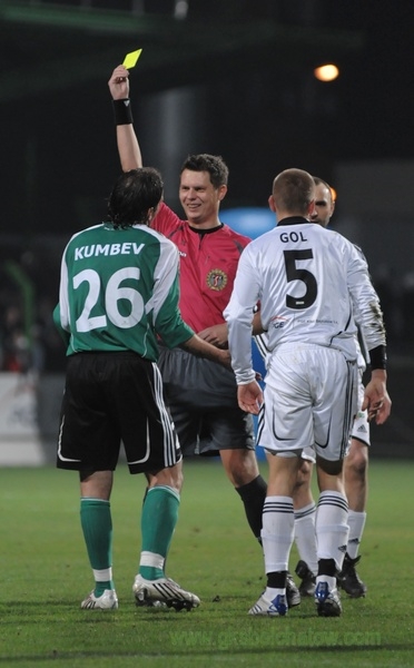 Żółte kartki: Drzymont, Adamiec, Rachwał (GKS) oraz Rzeźniczak, Kumbev (Legia)