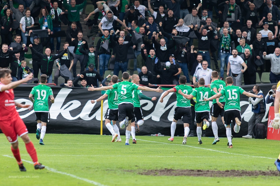 – Te oklaski należą się mojej drużynie. Miałem trochę czasu, by pozbierać myśli, ale nie wiem, co mam powiedzieć… Dzisiejszy mecz traktowaliśmy jako nagrodę za cały rok pracy. To było dla nas piłkarskie święto. Nie znam piłkarza, który nie chciałby w nim uczestniczyć. Ogromnie cieszę się, że nasi zawodnicy stanęli na wysokości zadania, pokazali znowu serducho i charakter, walczyli o każdy centymetr boiska. Było widać, jak bardzo zależy im na tym zwycięstwie. Na pewno indywidualnie pomógł nam w tym Bartek Bartosiak, który w odpowiednim momencie odpalił swoje „rakiety”. Dziękuję też za wsparcie naszym kibicom. Zrobiliśmy duży krok ku naszym marzeniom. Musimy zrobić jeszcze jeden w Stargardzie. Już o tym myślę, choć trzeba się najpierw zregenerować. Gratuluję drużynom Olimpii Grudziądz i Radomiaka Radom awansu, my na niego poczekamy jeszcze tydzień. Mam jednak nadzieję, że zrealizujemy nasz cel, który sobie zakładaliśmy, o czym głośno nie mówiliśmy. Wszystko w naszych nogach i głowach.