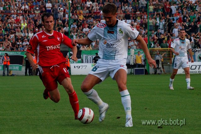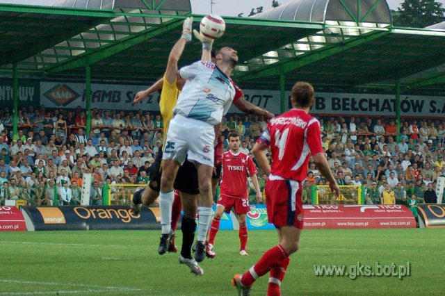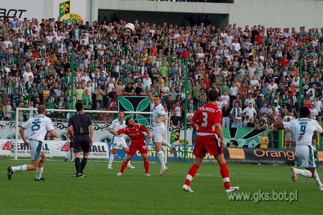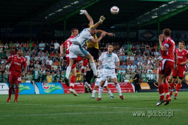 Mecz robił się coraz ciekawszy, bo atakował także BOT GKS. Po podaniu Marcina Kowalczyka głową strzelał Carlo Costly, ale trafił w słupek. Goście zaczęli jednak zwalniać tempo (zwłaszcza Pawełek, który chyba zmierzał przez 80 minut grać na czas). Jedyne efekty ataków gospodarzy to rzuty rożne. Niestety dośrodkowania Garguły wybijali gracze jeszcze aktualnych wicemistrzów Polski. Kiedy zacentrował Rafał Boguski, a piłkę zgrał Ujek, Costly z woleja minimalnie przestrzelił. Honduranin mógł się zrehabilitować w 43 min, ale i tym razem uderzył głową obok słupka.
